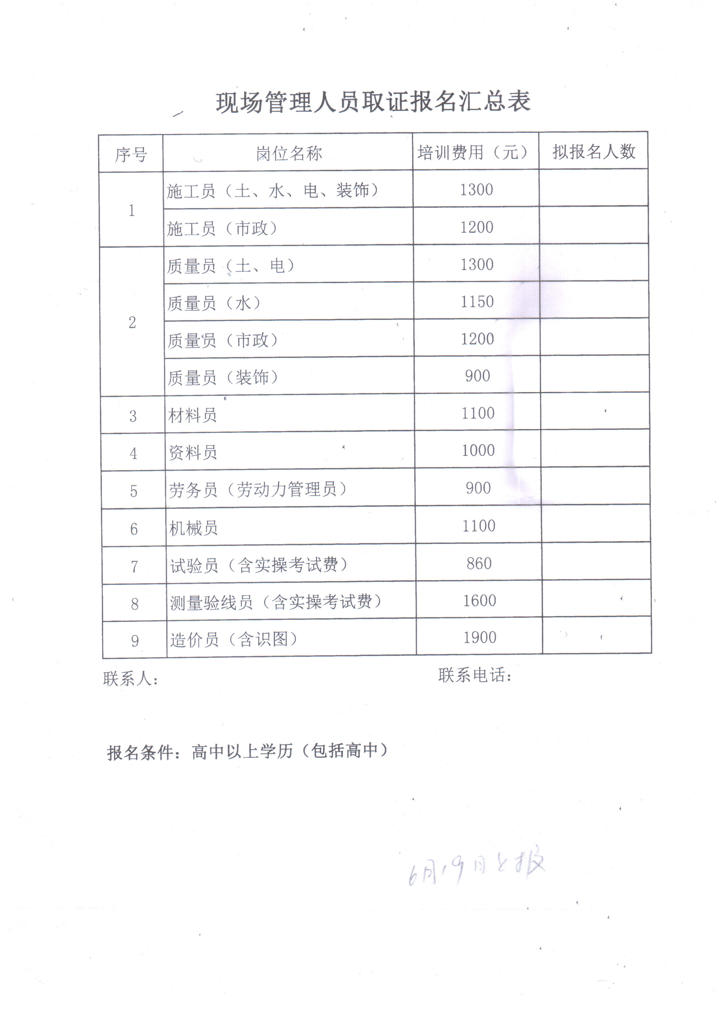 所有崗位(八大員)自愿報(bào)名參加培訓(xùn)人員培訓(xùn)費(fèi)用自理,如公司根據(jù)資質(zhì)就位需求,確實(shí)需要相關(guān)崗位人員證書(shū)的給予報(bào)銷(xiāo)考試費(fèi)用。請(qǐng)各部門(mén)于6月17日前將需要培訓(xùn)人員名單報(bào)人力資源部,或?qū)㈦娮影姘l(fā)至mengmeng0398@163.com郵箱。